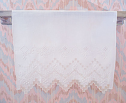 English Style.  English Drawn Works & Hemstitched Guest towel. 14x22" $19,99 each. |  English Hand Drawn Works & Hemstitched. Guest towel. $19.99 |
